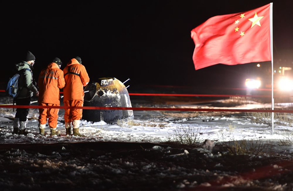 2020年12月17日,嫦娥五號返回器攜帶月球樣品,在內蒙古四子王旗預定區域安全着陸。新華社記者 任軍川 攝