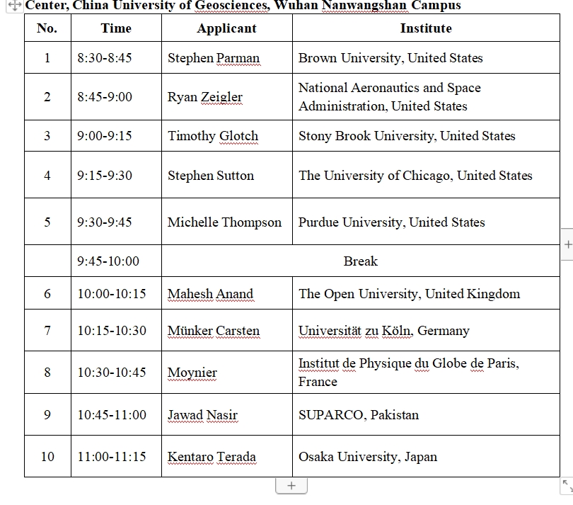 國家航天局發佈的會議議程顯示,共有5位來自美國的申請者參加本次評審會議,包括美國國家航空航天局(NASA)阿波羅任務樣品策展人瑞安·齊格勒(Ryan Zeigler)、布朗大學的行星科學家斯蒂芬·帕曼(Stephen Parman)、石溪大學的蒂莫西·格洛奇(Timothy Glotch)、芝加哥大學的斯蒂芬·薩頓(Stephen Sutton)和普渡大學的米歇爾·湯普森(Michelle Thompson)。