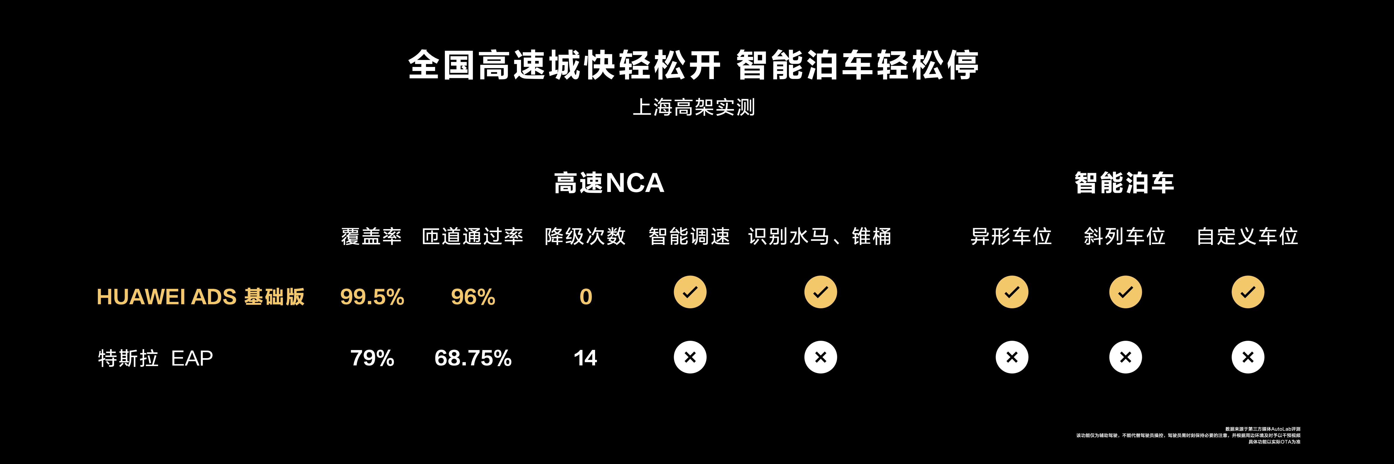 升級後的HUAWEI ADS基礎版,同樣暫時只支持高快路段NCA,華為方面並未明確指出其與ADS進階包的區別。但是從演示視頻來看,這個視覺智駕方案已經強於特斯拉在國內的非滿血版本,未來能否擴大到城區可用令人期待。