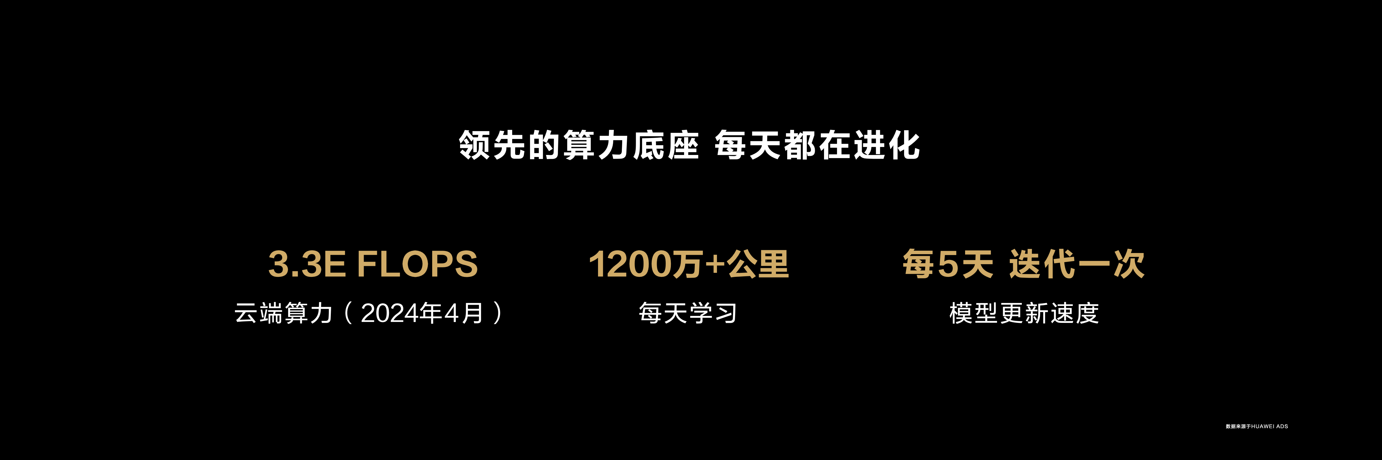 算法的背後則是算力。華為智駕所依託的雲端算力已經達到3.3E FLOPS,每天學習1200萬+公里,模型每5天就可以迭代一次。