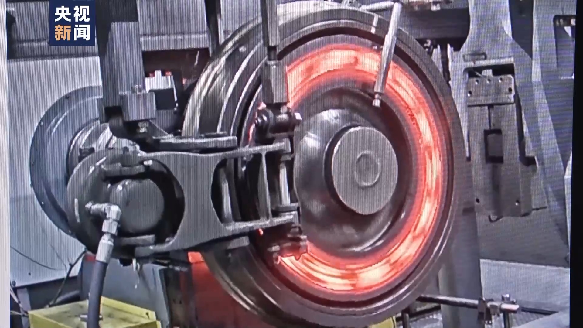 鏡頭中燒紅的圓盤就是正在試驗的制動盤,它在仿真極端工況下,逐漸由黑變紅,再由紅變黑,温差可以超過700℃。而變化過程中積累的數據都會存入“智慧大腦”,搭建數字模型,對每一個環節進行精量計算。