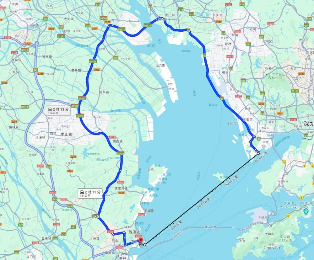 使用evtol從深圳直飛珠海只需要20分鐘,而開車需要繞行整個灣區耗時兩個半小時