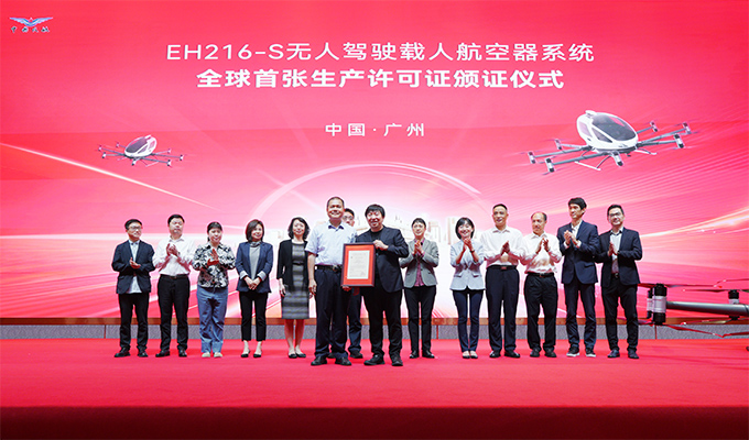 4月7日,億航智能公司的EH216S無人駕駛載人航空器得到了中國民航局頒發的生產許可證,成為全球首個得到了生產許可證的eVTOL(電動垂直起降)航空器。而早在2023年的10月13日和12月21日,EH216S就已經獲得了民航局頒發的型號合格證(TC)與適航許可證(AC),這代表着億航EH216S成為了全球首個三證齊全且可以投入運行的eVTOL無人駕駛載人飛行器。