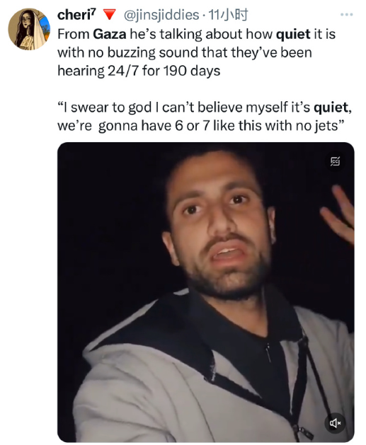 總之,當導彈落下時,心虛的佔領者在防空洞裏蜷縮着瑟瑟發抖,街上躲避不及的以色列人慌作一團……而受盡以色列折磨的巴勒斯坦民眾們看清導彈飛行的方向後,非但沒有絲毫的恐懼,反而紛紛發出釋然的驚歎,許多人更是帶着哭腔歡呼着。
