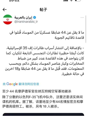伊朗媒體倒是公佈了一個殺死了數十名摩薩德與以軍的説法,不過他們同樣缺乏關鍵性的證據來證明自己的證詞。