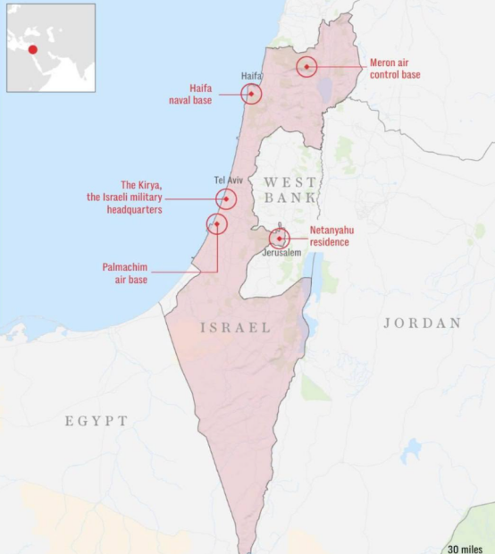 英國電訊報在第一時間公佈的伊朗打擊的以色列目標:機場、艦隊基地和總理官邸
