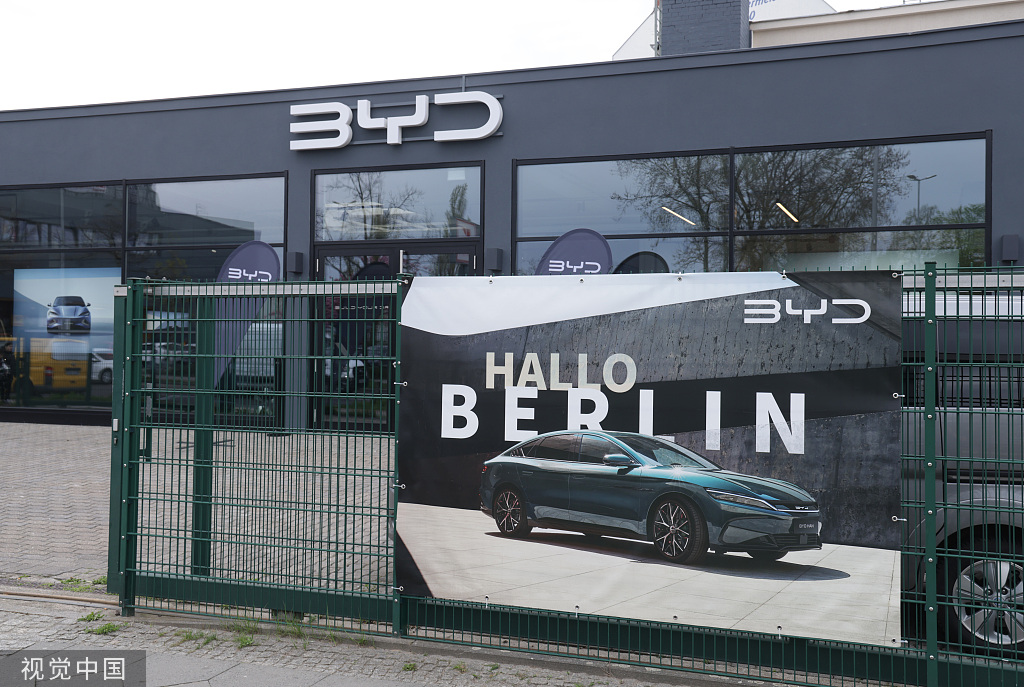 當地時間2024年4月5日,德國柏林,一家比亞迪電動汽車經銷商站。(圖源:視覺中國)