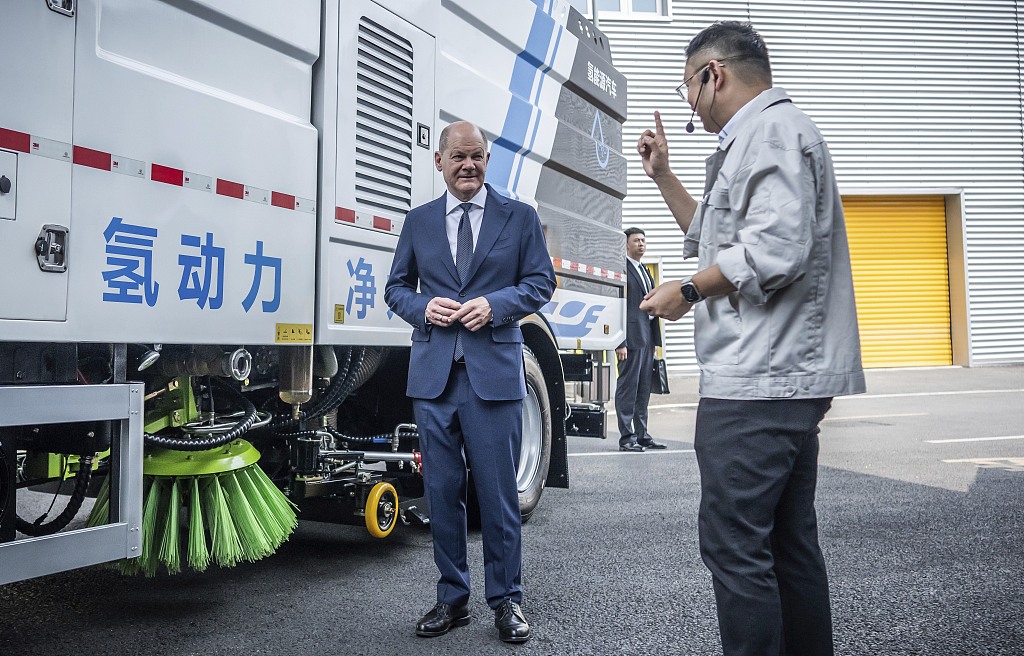 2024年4月14日,重慶,德國總理朔爾茨參觀博世公司及其位於重慶的氫動力生產基地。(圖源:視覺中國)