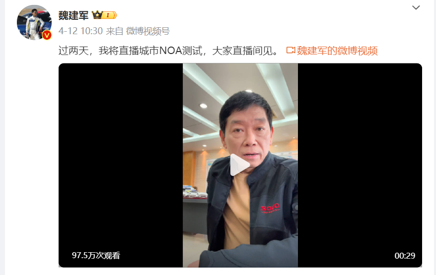 4月15日,在這個長城董事長魏建軍提前3天發出預告的時間,魏建軍走入了長城汽車的視頻直播,並與技術部門一同對長城汽車的最新智駕技術無圖(無高精地圖)城市NOA能力進行了實測。