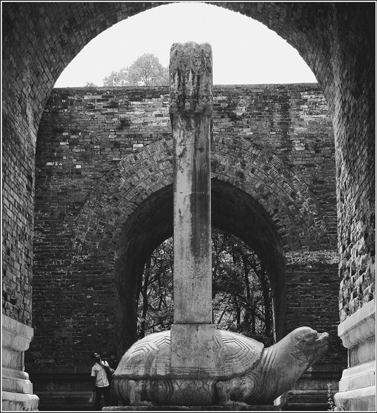 近日,有網友向南京市政府方面反映,其發現明孝陵神功聖德碑被刻有英文。4月12日,中山陵園管理局在人民網“領導留言板”上回應稱,經我們翻閲檔案、調查核實,該處刻劃地點在神功聖德碑的龜砆上,根據專家推斷存在已有百餘年,非近期刻劃。