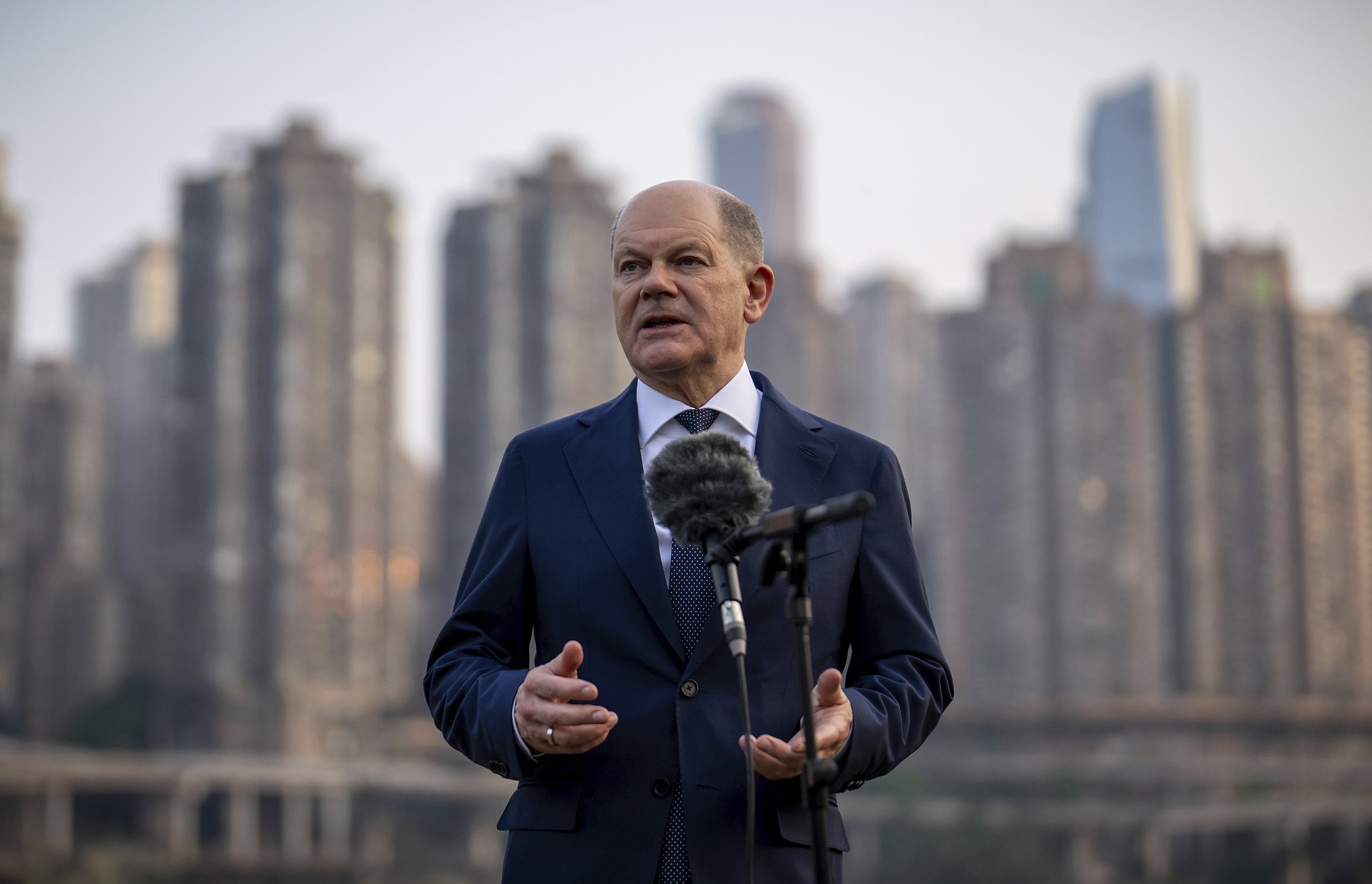 4月14日,朔爾茨訪華,在重慶發表講話 圖源:視覺中國