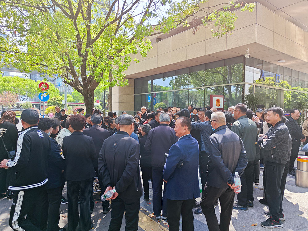 4月10日下午,3輛大巴車載着160多名村民從五溪村來到温州中院門口,很多村民是第一次來到法院參加庭審。一路上,有村民不斷提醒:進入法庭後,大家要保持理性、控制情緒,尊重法庭秩序。