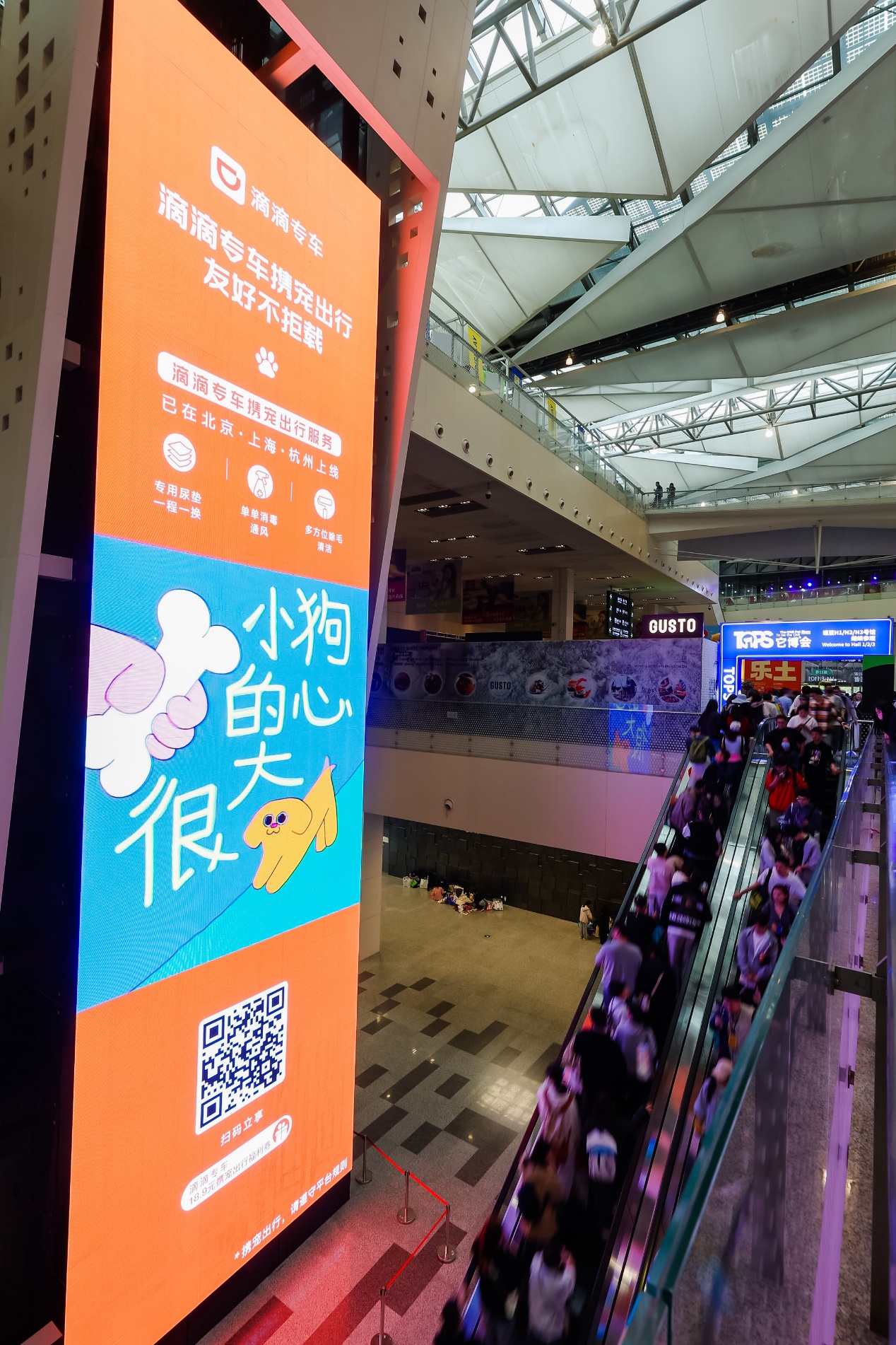 滴滴專車作為它博會的寵物友好共創品牌,也在現場打造了滴滴專車寵物友好車站,用户可以線下打卡領券,助力人寵友好的寵物出行新體驗。