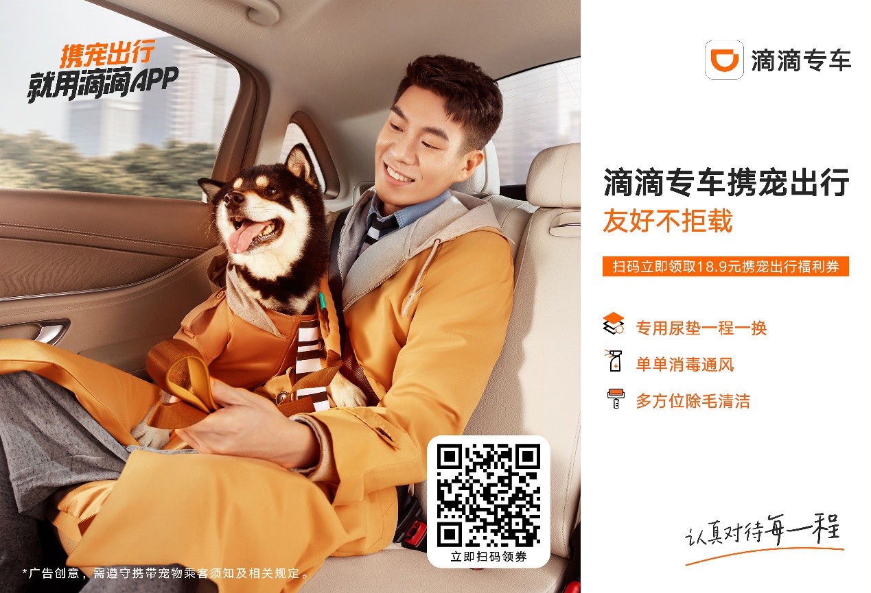近年來隨着養寵人士的增多,攜寵出行成為越來越多養寵家庭的日常,比如帶着“毛孩子”回家過年、一起旅遊等等。為了滿足這部分用户的打車需求,方便養寵人士和寵物的出行,滴滴專車推出了“寵物友好”的攜寵出行服務。由經過專業服務培訓的司機提供出行服務,並在車內配備了一次性寵物尿墊和寵物專用清潔消毒劑,一程一換墊、一寵一消毒,為乘客和愛寵提供舒適、衞生的乘車環境,同時也減少了乘客和寵物的出行壓力。