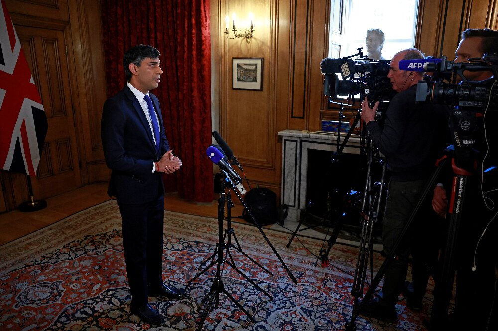 當地時間2024年4月14日,英國倫敦,英國首相蘇納克就伊朗襲擊以色列事件發表聲明,證實英戰機擊落數架伊朗無人機。圖自IC photo