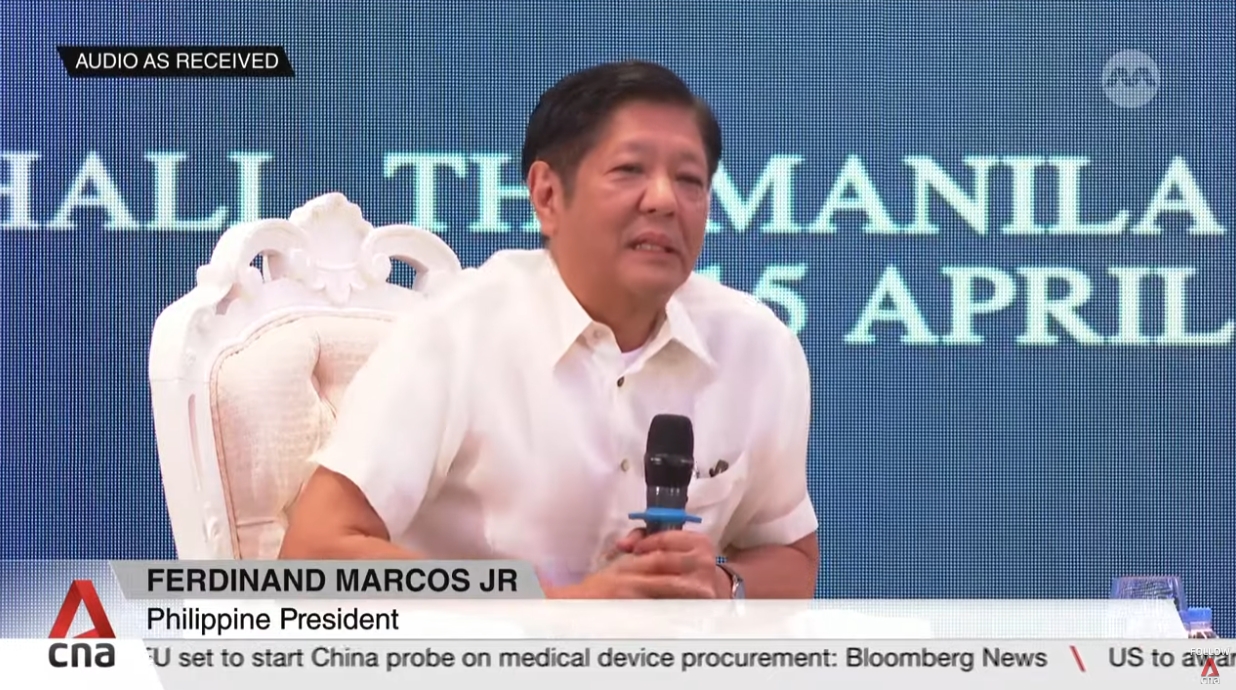 當地時間4月15日,菲律賓總統馬科斯在論壇講話 截圖自新加坡亞洲新聞台(CNA)