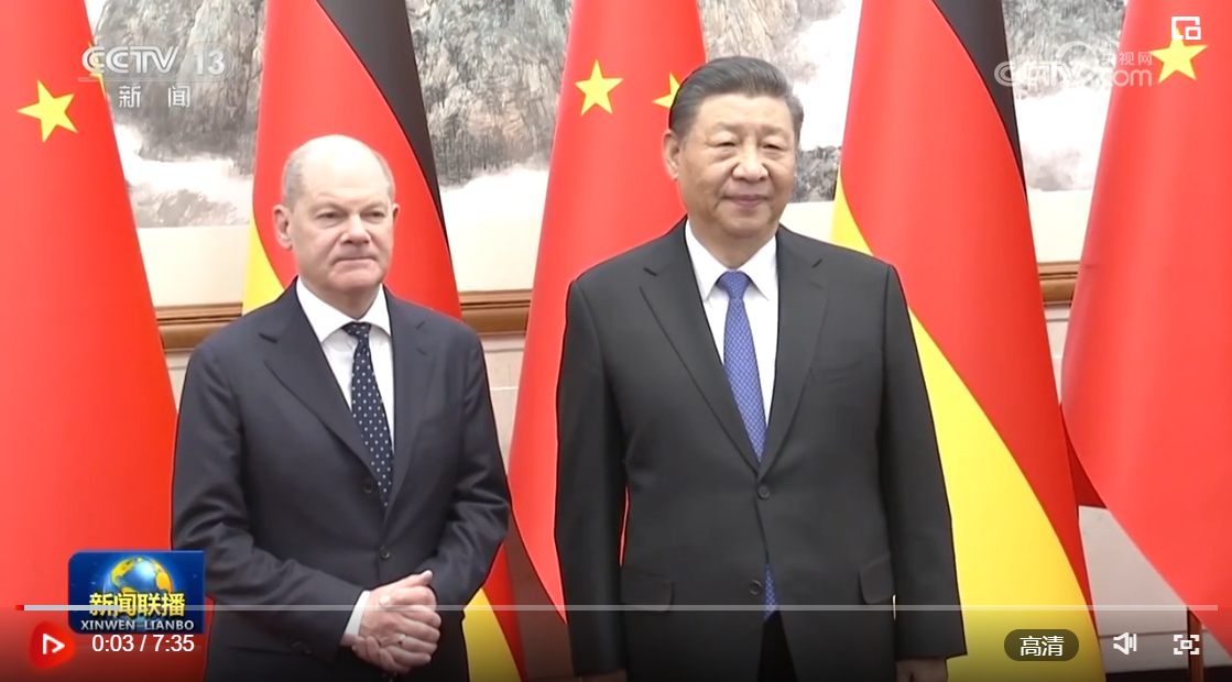 4月16日上午,國家主席習近平在北京釣魚台國賓館會見德國總理朔爾茨。