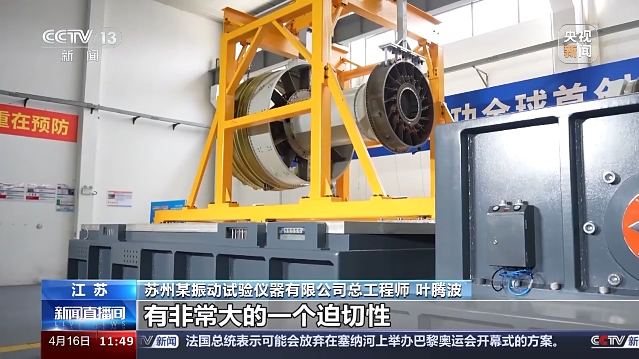 蘇州某振動試驗儀器有限公司總工程師 葉騰波:過去它只能做部件級、零部件級的,在傳統的振動台,原有的推力60噸、50噸,不能完全滿足整機大量級測試、疲勞測試性能需求,所以對於大推力100噸的測試,有非常大的迫切性。