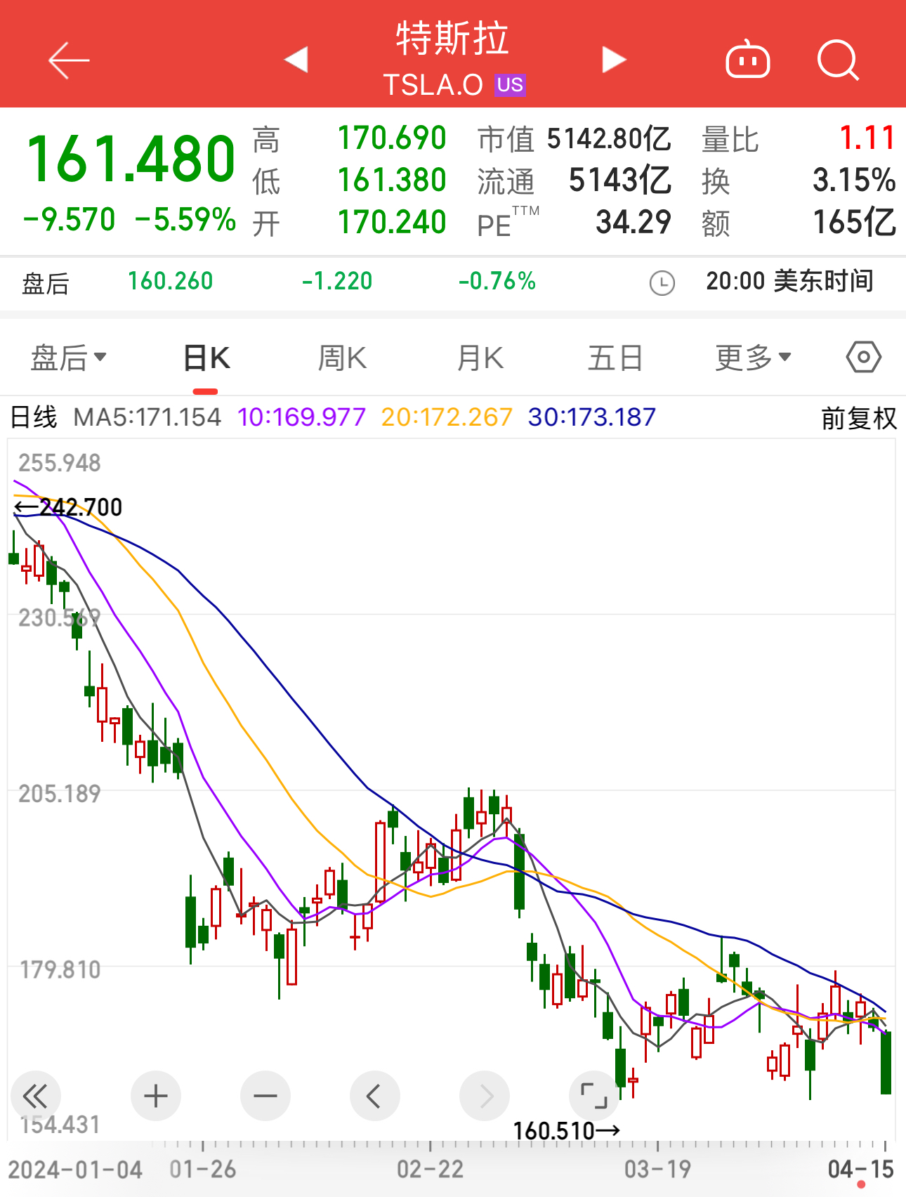 受特斯拉裁員消息影響,當地時間4月16日特斯拉美股大跌5.59%,報收161.48美元,市值蒸發304億美元(約合人民幣2200億元),創下今年以來新低。自今年年初至今,特斯拉市值已蒸發跌35%。作為對比,豐田汽車和通用汽車等傳統汽車製造商股價分別上漲了45%和約20%。