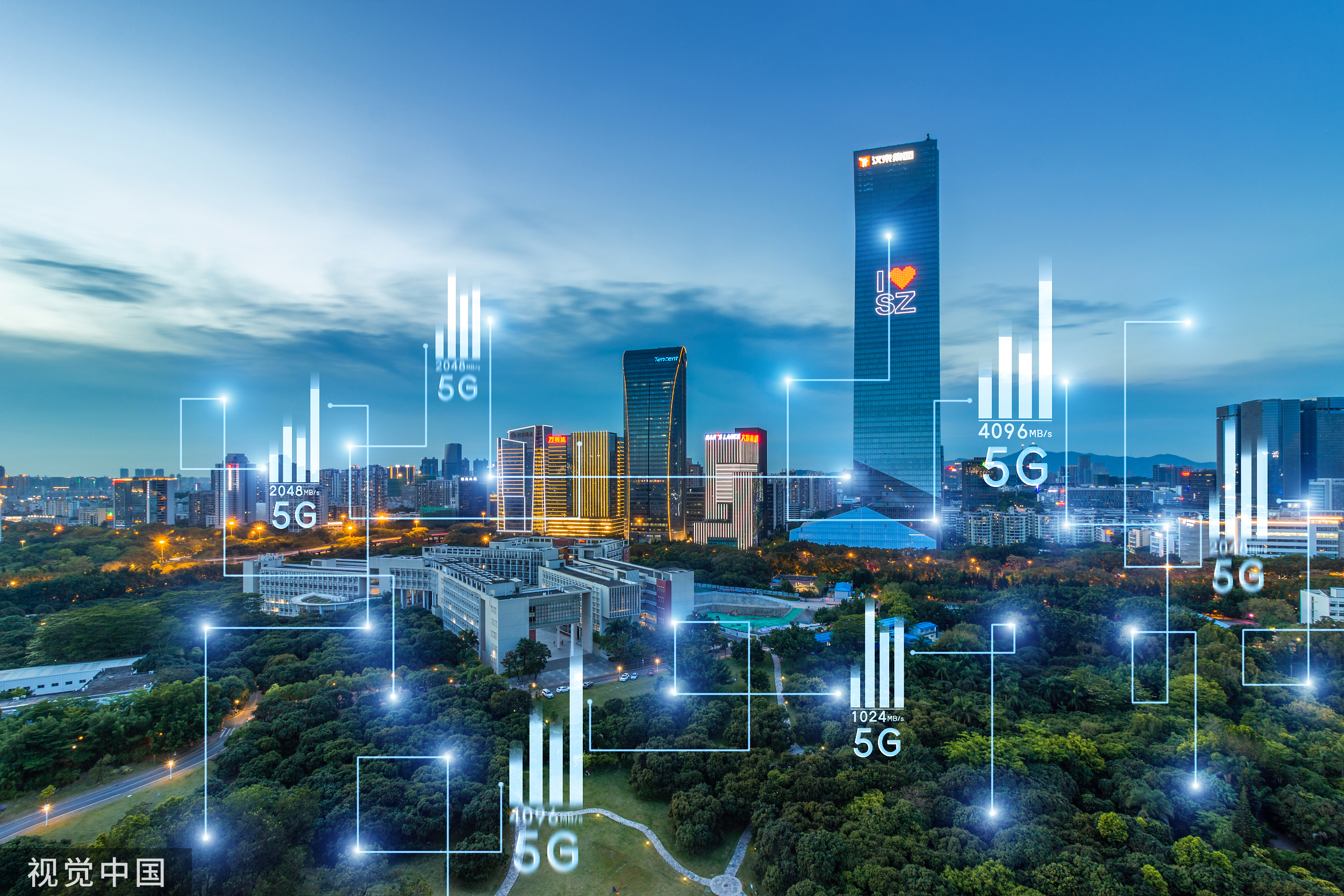 深圳南山CBD天際線和5G智慧城市概念 圖自視覺中國