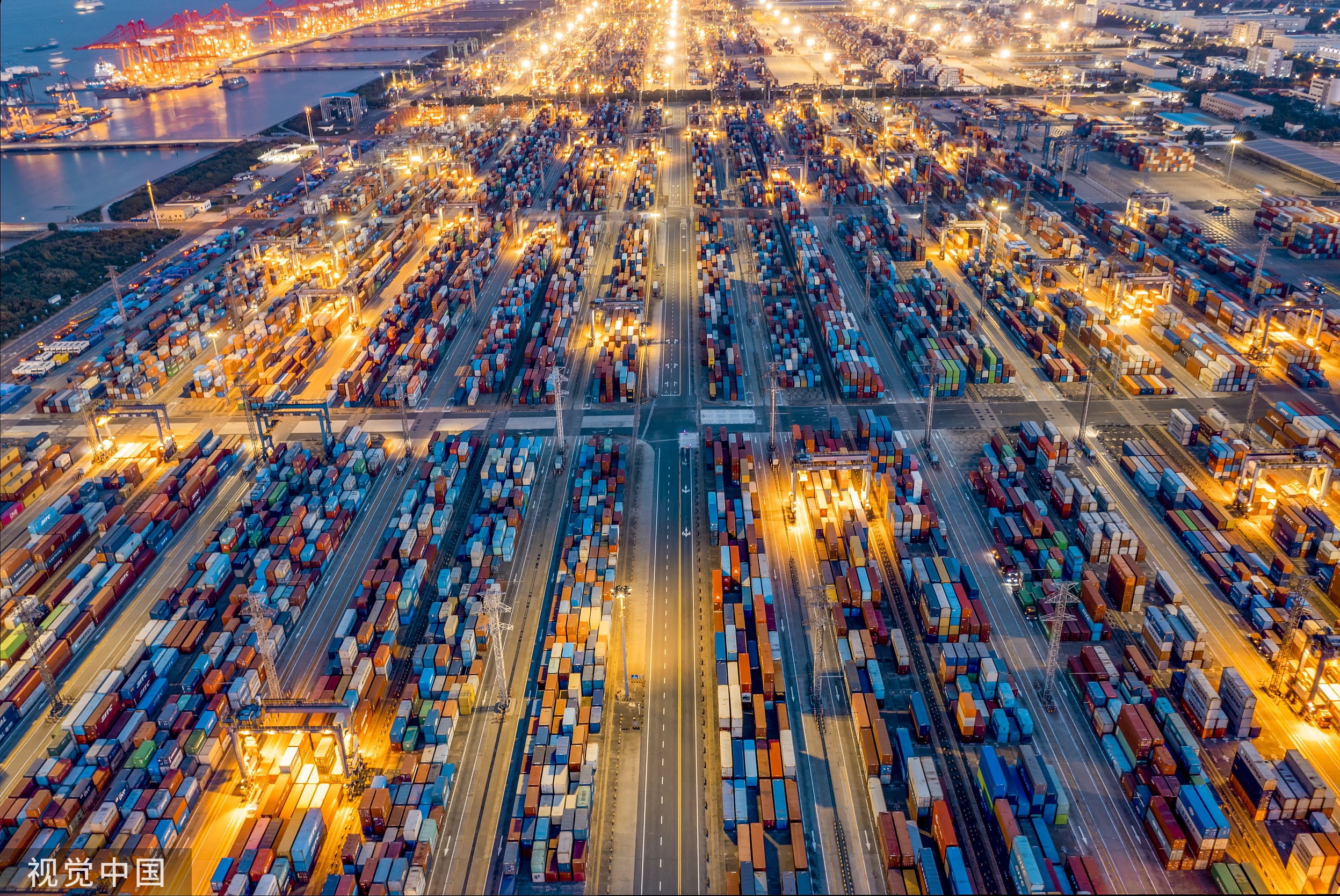 上海浦東集裝箱港口夜景 圖自視覺中國