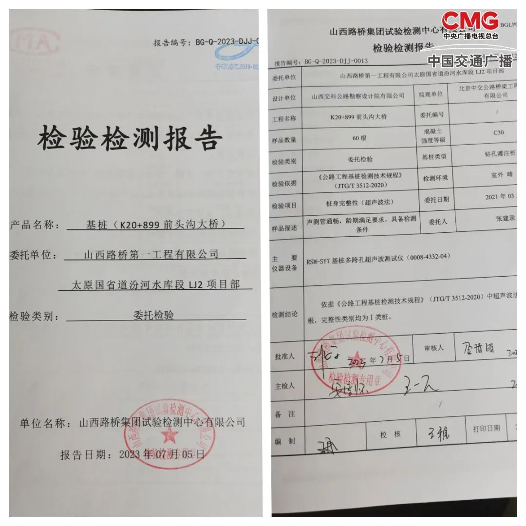 就此,中國交通廣播記者專程到山西路橋一公司核實情況。其項目部的負責人冀文俊、張建錄告訴記者,朱竹林所反映的情況不屬實,並給記者出示了一份前頭溝大橋的基樁檢驗檢測報告。