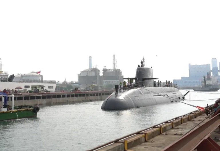 (資料圖)正在進行繫泊試驗的“海鯤”號常規潛艇 圖片來源:社交媒體