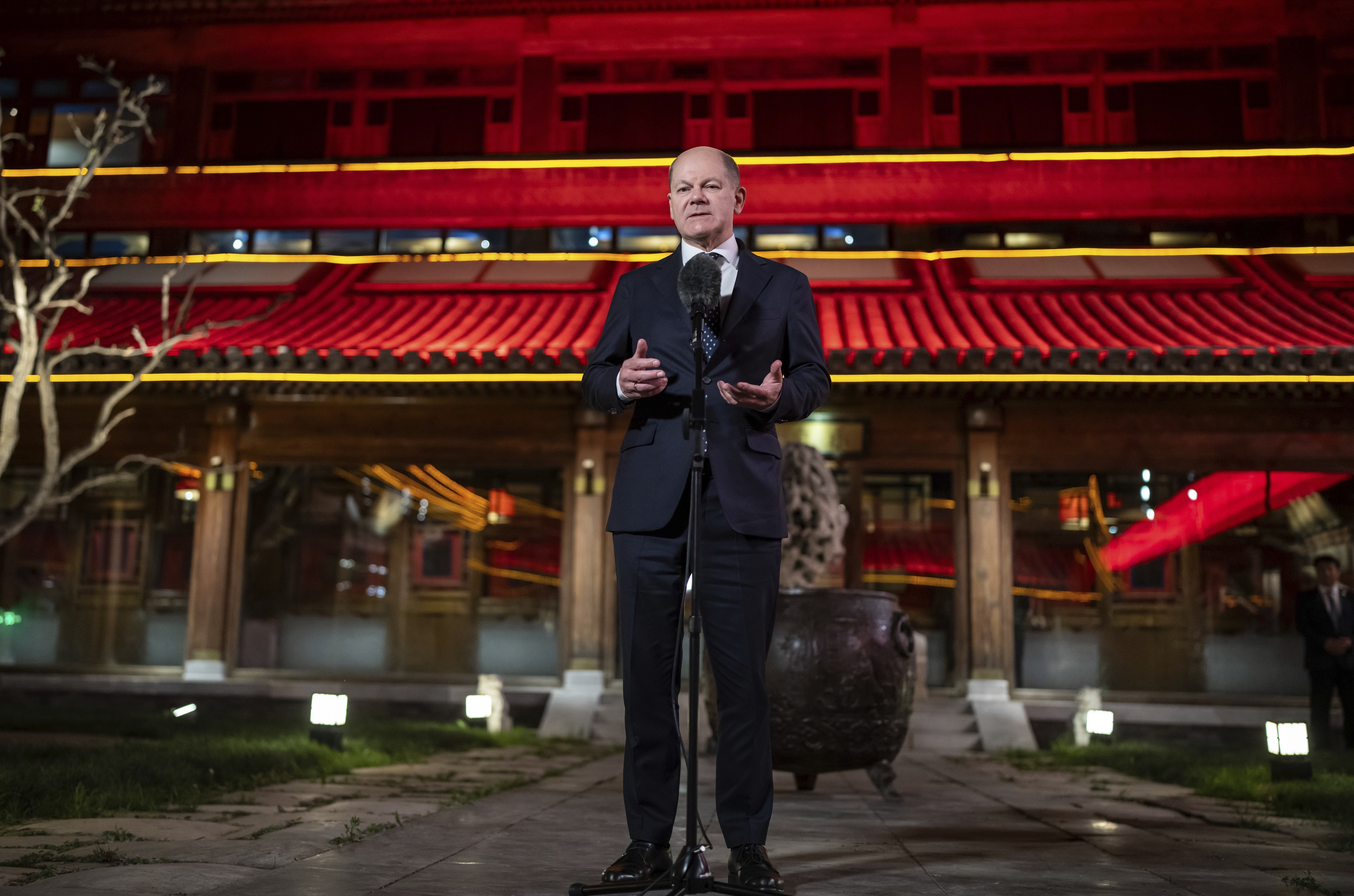 2024年4月16日,德國總理奧拉夫·朔爾茨在北京訪問。圖源:視覺中國