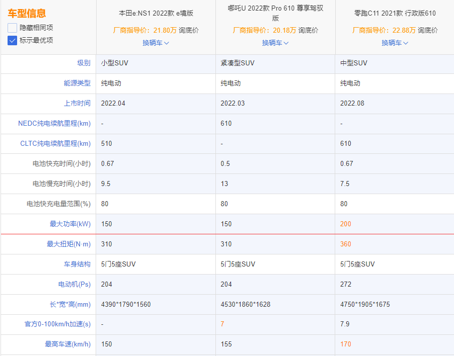 雖然在兩年前便已經搭載了由寧德時代提供的三元鋰電池,但e:NS1的低續航版本CLTC續航僅420km,高續航版本也僅有510km,純電車型的最大功率則為150kW。這一數據對比新勢力中的哪吒U、零跑C11等車型,其三電技術已經與中國新勢力車企有着一定差距。