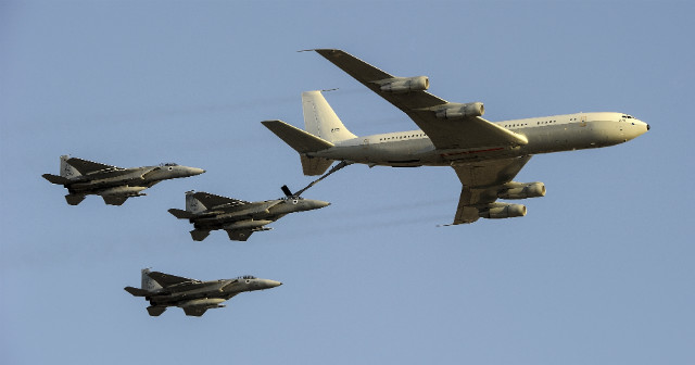 以色列邊境距離伊朗首都德黑蘭約1500km,距離伊朗各類重要設施多數也在1000km以上,這意味着以戰術空軍為核心的以軍飛機只有通過空中加油才能攜帶重磅炸彈對伊朗縱深進行打擊。根據以色列編制,以軍正在服役的加油機包括7架波音707改裝的加油機和7架KC-130,其中波音707是潛在打擊行動的主力加油機。
