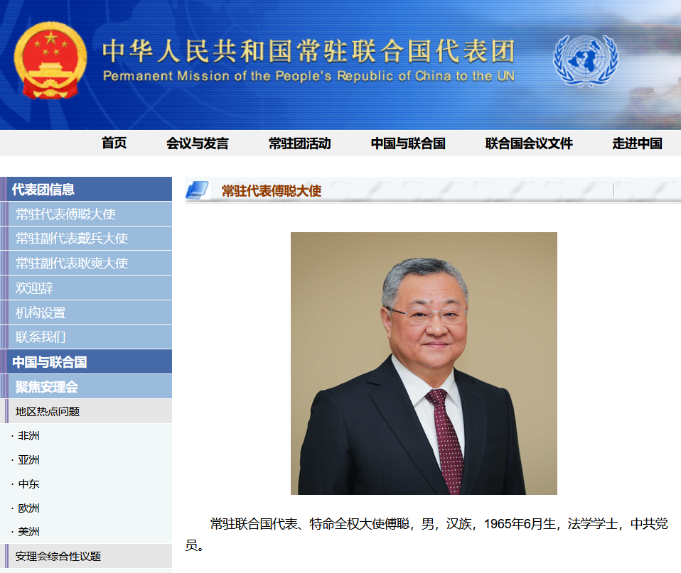 據中國常駐聯合國代表團網站,傅聰已任中國常駐聯合國代表、特命全權大使。