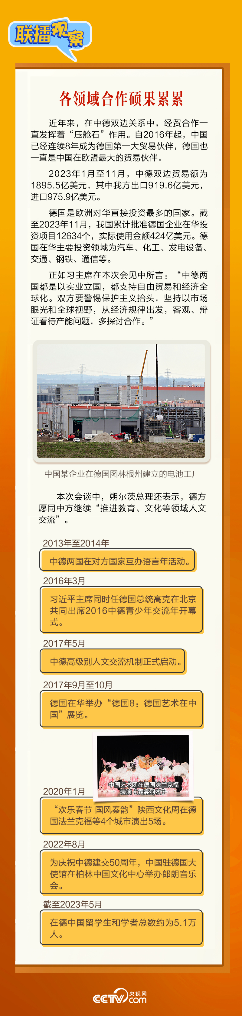 4月16日上午,習近平主席在北京釣魚台國賓館會見朔爾茨總理。會見中,習主席強調,要“牢牢把握中德是全方位戰略伙伴這一定位”。中德建立全方位戰略伙伴關係10年來,兩國如何共同發展,相互成就?央視網《聯播觀察》帶您瞭解。