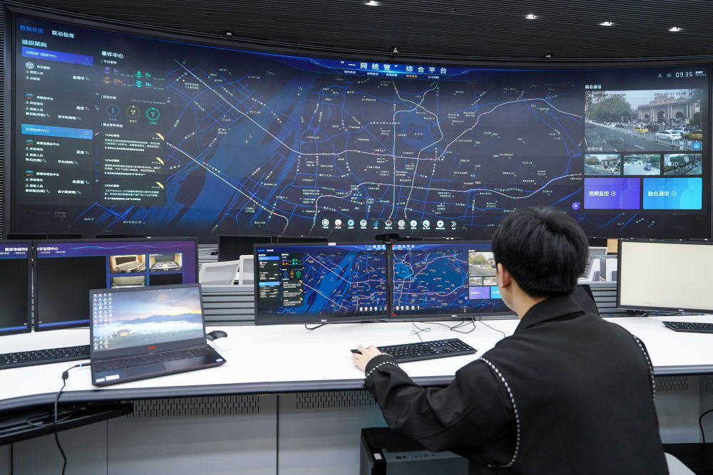 工作人員在江蘇省南京市城市運行管理中心指揮大廳操作“一網統管”指揮調度系統(2024年4月11日攝)。近年來,南京市積極構建數字化、智能化、智慧化城市治理體系,將城市運行“一網統管”作為推進城市數字化轉型、城市治理體系和治理能力現代化的重要工作。