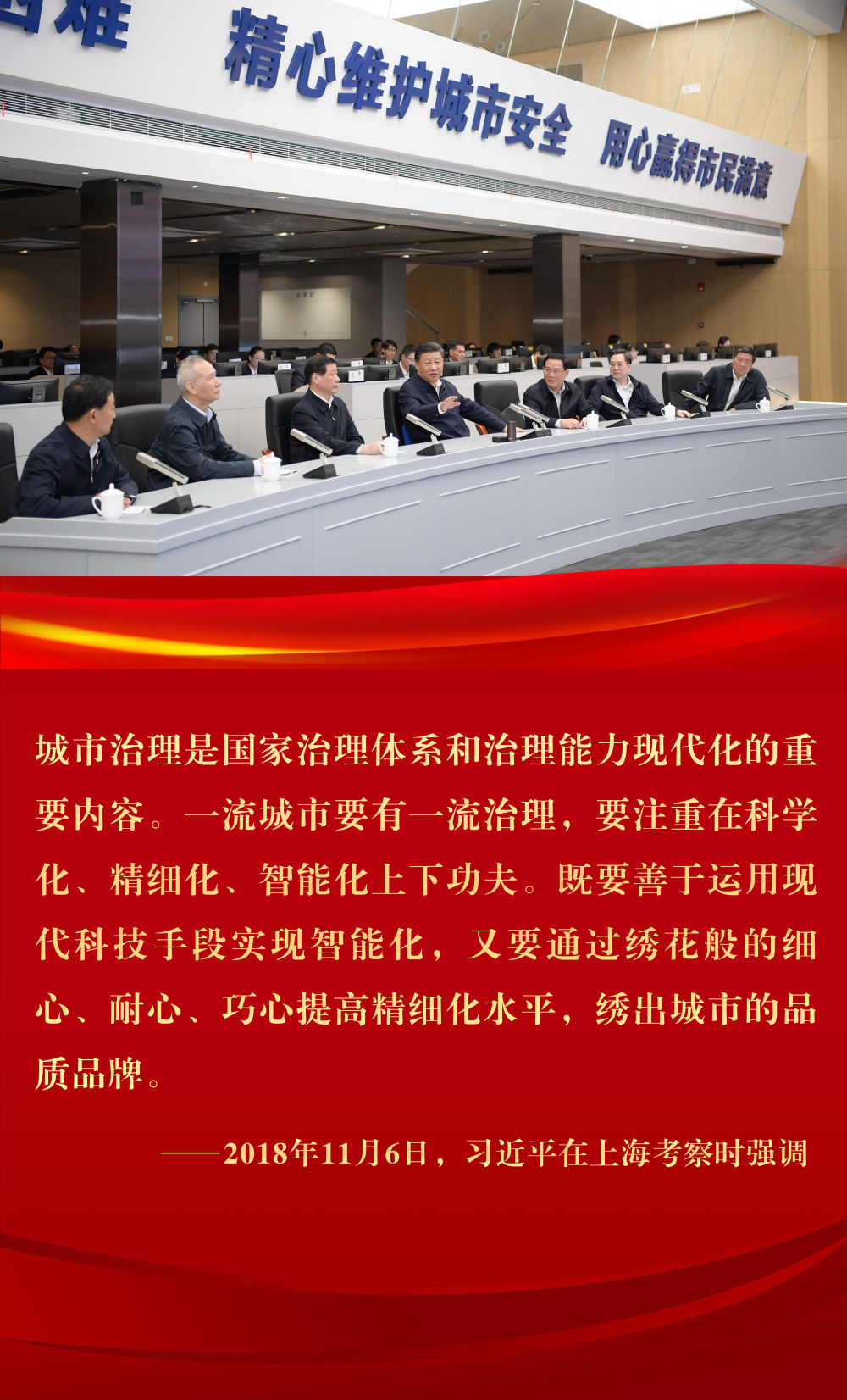 2018年11月6日下午,習近平在上海浦東新區城市運行綜合管理中心瞭解上海城市精細化管理和國際貿易單一窗口運營情況。