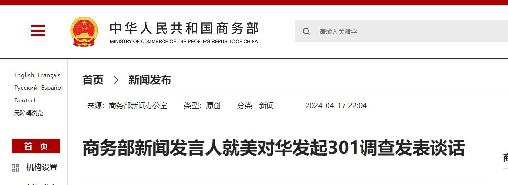 美國對中國海事、物流和造船業發起301調查,我商務部回應