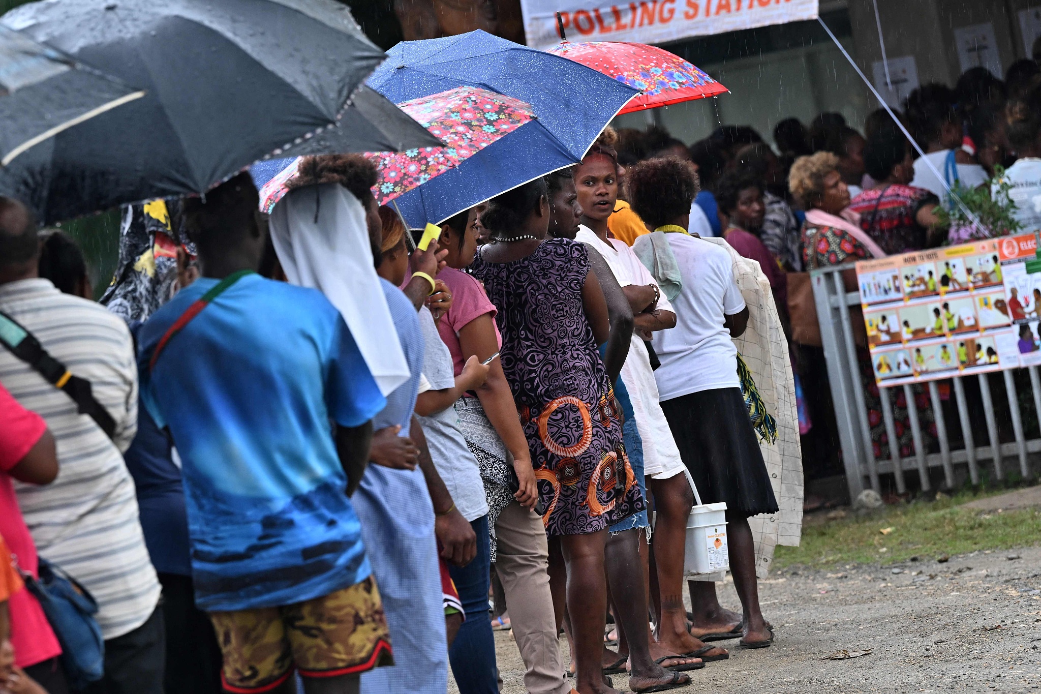 4月17日,所羅門羣島首都霍尼亞拉,選民在投票站排隊投票 圖源:視覺中國