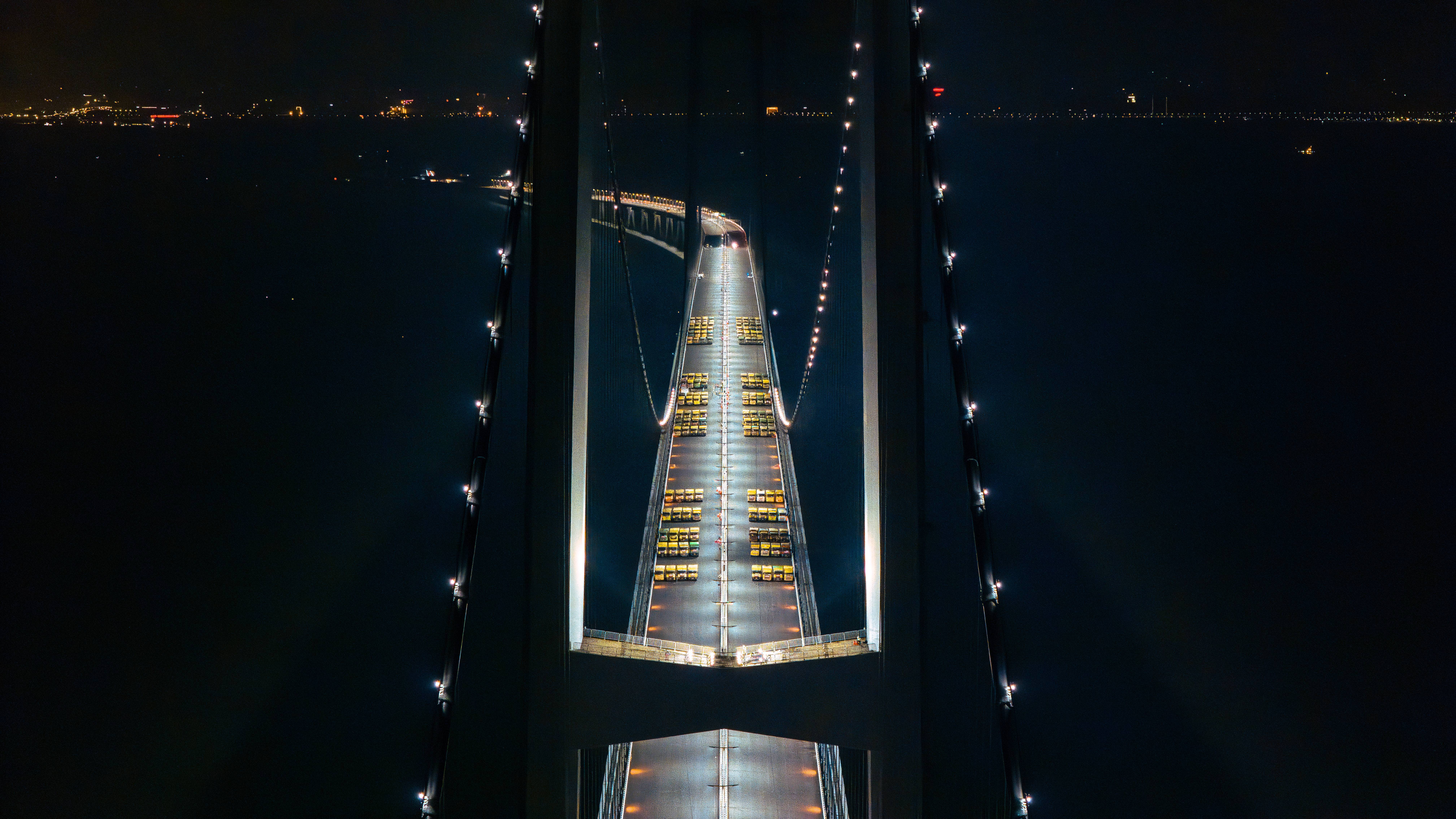 4月17日晚,經過136輛總重約5000噸的大貨車組的載荷測試,深中通道伶仃洋大橋完成動靜載試驗,這是世界首次在全離岸海中超大跨徑懸索橋上完成的荷載試驗。此前,深中通道中山大橋、非通航孔引橋已完成荷載試驗。深中通道橋樑工程順利通過“大考”,朝着今年6月具備通車條件又邁進關鍵一步。