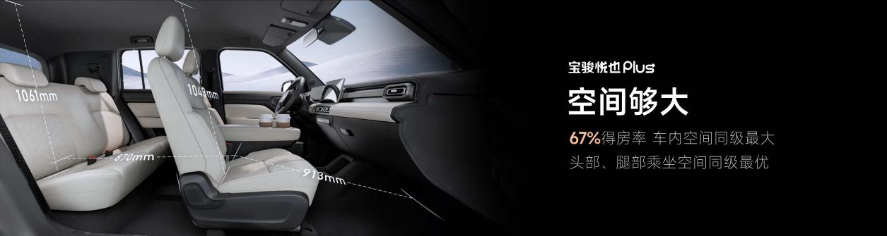 作為天輿架構M平台下的首款潮玩智能純電SUV,寶駿悦也Plus不僅擁有“悦己”的顏值,還兼顧家庭出行的全部需求。新車外觀延續了悦也家族方盒子設計語言,提供5款時尚質感車色,內飾提供沉穩黑、典雅白兩款配色,將潮酷顏值進行到底。在方盒子造型下,寶駿悦也Plus最大化提升車內空間利用率,實現67%超大得房率,頭部、腿部乘坐空間同級最優。同時,新車還擁有高達2.24㎡的同級最大內飾軟包覆面積,搭配Q彈飽滿大座椅,為用户帶來越級大空間、高品質的座艙體驗,滿足小家庭用户對空間、品質的全部期待。