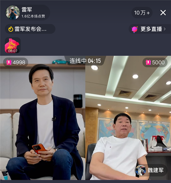 在直播過程中,長城汽車董事長魏建軍也進入直播間與雷軍進行了連線交流。