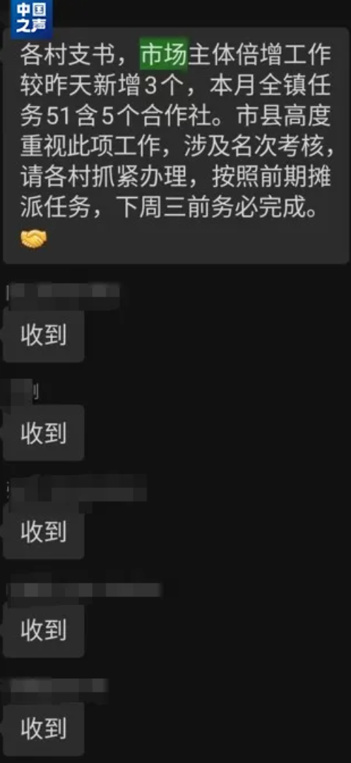 大同市陽高縣基層幹部反映,從2022年4月起,陽高縣有了“市場主體倍增”任務,縣裏派給鄉鎮,鄉鎮再派給村支書。