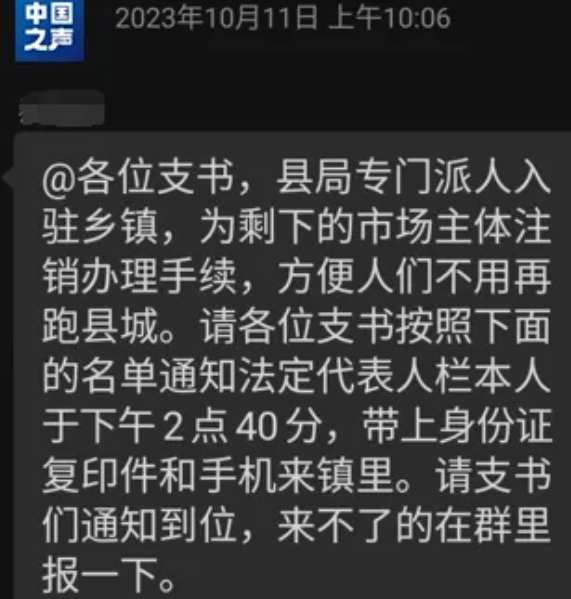 同時因為2023年上半年任務壓力大,個體工商户數量大增,導致企業佔比過低,縣裏又要求之前註冊的個體工商户辦理註銷,升級為公司。“可以是合資公司或者個人獨資公司,規格提升了。”
