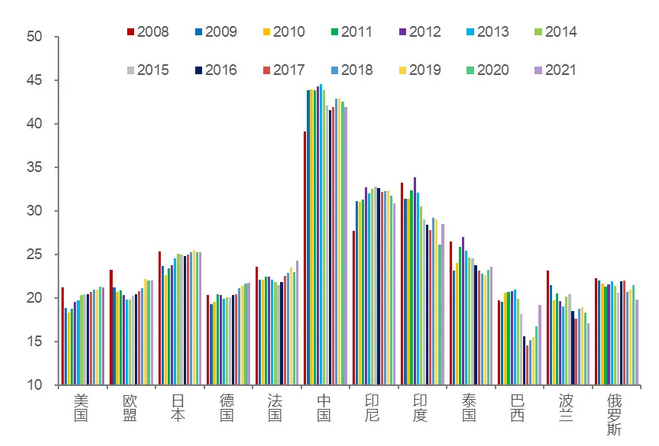 主要經濟體投資(資本形成)對GDP的貢獻 來源:WIND,中泰證券研究所
