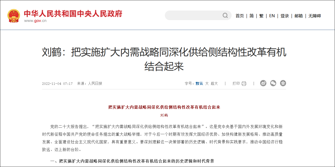 這也是為什麼2015年後,高層將短期宏觀經濟的管理政策調整到以供給側為主,而不是簡單的需求擴張。後來,我們又提出了要把擴大內需和供給側結構改革結合起來。中國前副總理劉鶴在2022年還專門發表了一篇名為《把實施擴大內需戰略同深化供給側結構性改革有機結合起來》的文章。