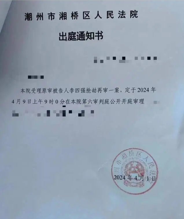 據羊城晚報·羊城派報道,4月19日,廣東省潮州市湘橋區人民法院依法對李四強搶劫再審一案進行公開宣判。