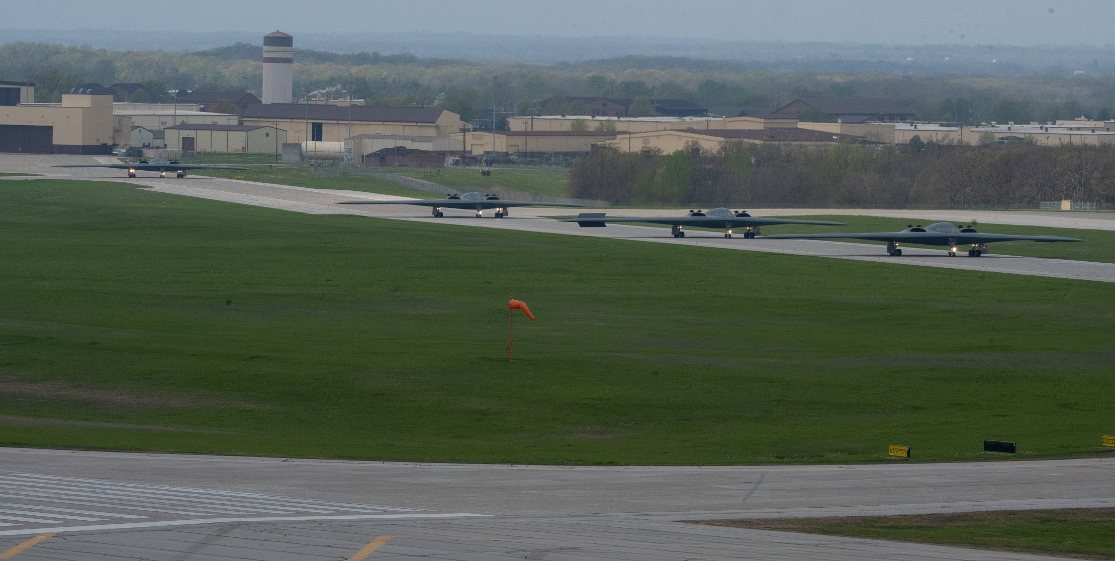 懷特曼空軍基地滑行道上排隊滑行的B-2 圖片來源:DVIDS