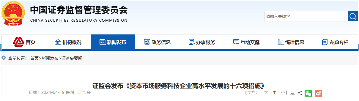 證監會發布《資本市場服務科技企業高水平發展的十六項措施》
