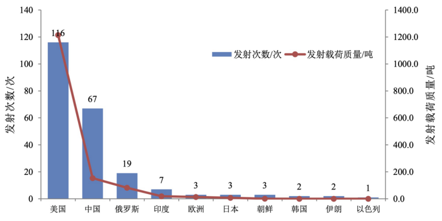 2023年世界航天發射情況。圖自《中國航天科技活動藍皮書》(2023年)