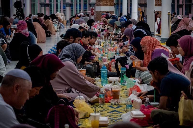 馬來西亞穆斯林在清真寺裏吃開齋飯(圖片來源:ICphoto)