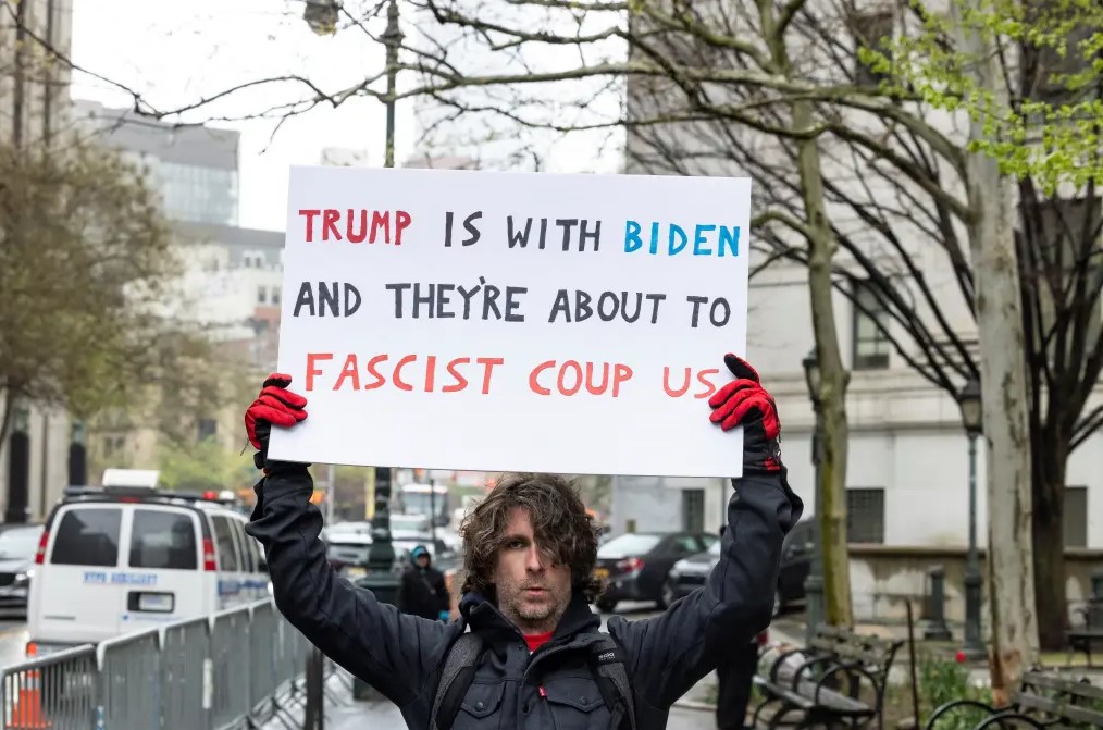 他此前曾帶着“特朗普跟拜登是一夥的,他們很快將發動法西斯政變”標語參加圍繞特朗普“封口費”案的相關示威。《紐約時報》報道稱,阿扎雷洛18日曾接受街頭採訪稱,特朗普是“秘密盜賊統治階層”的一員,自己是通過研究比特幣和特朗普的大金主、PayPal首席執行官彼得·蒂爾(Peter Thiel),才產生當前批判美國政府的觀念。