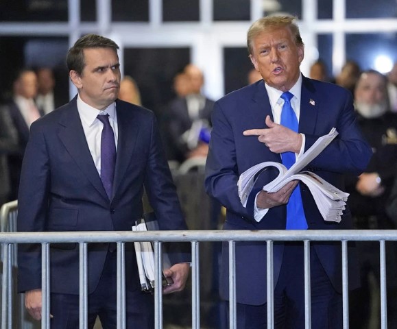 2023年3月底,檢察官布拉格以34項重罪指控起訴特朗普,指認他曾委託前私人律師科亨向豔星丹尼爾斯支付13萬美元“封口費”,以免桃色醜聞影響其2016年競選總統,隨後偽造商業記錄,以“律師費”名義分期返還科亨墊付款項,以掩蓋其違反紐約州和聯邦選舉法規的行為。
